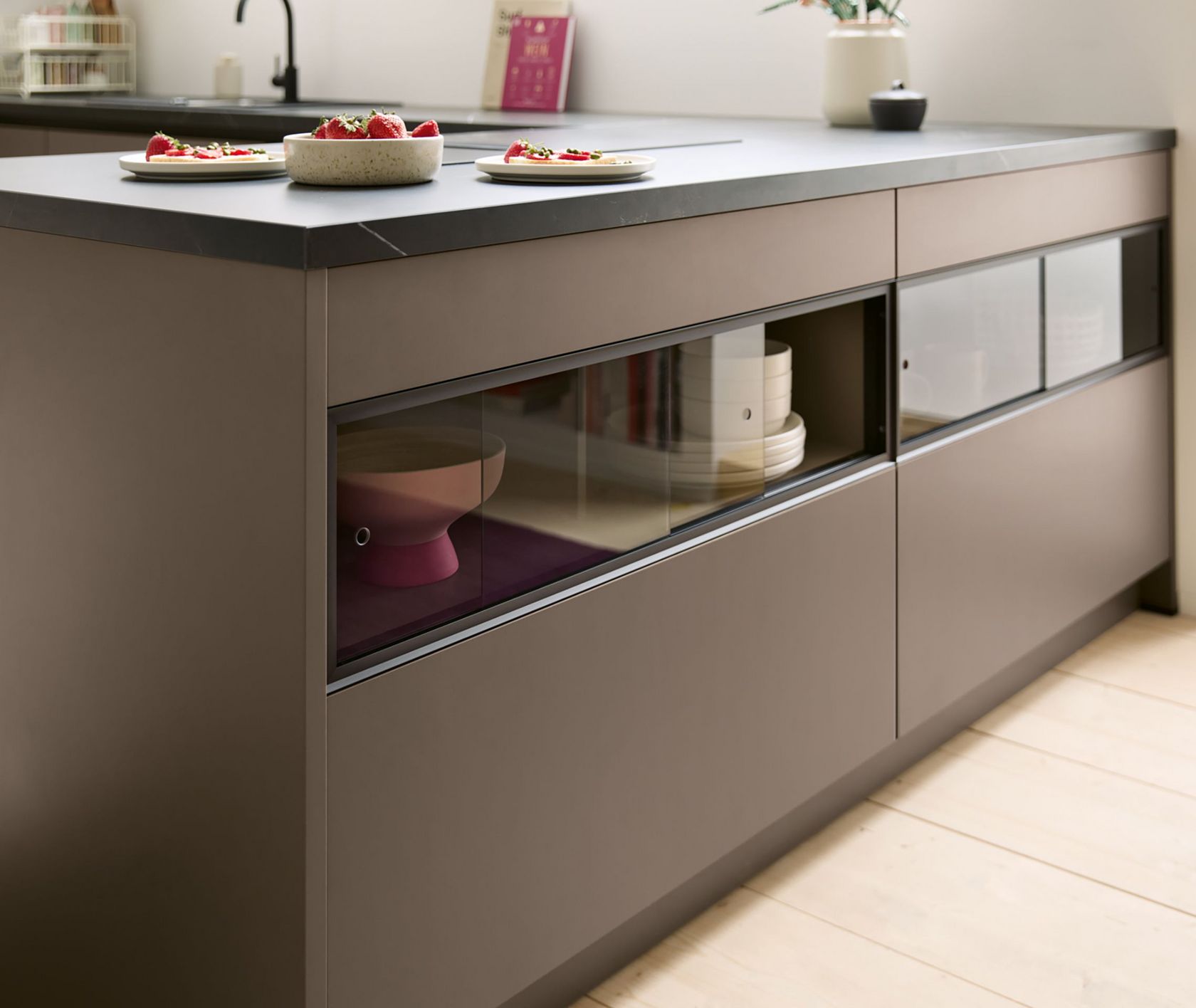 Im Oberschrankbereich oder Kücheninseln integriert, sorgt die transparente Gestaltung für eine offene, moderne Atmosphäre. So wird die Küche nicht nur zum funktionalen Arbeitsbereich, sondern auch zum kommunikativen Zentrum des Wohnraums.