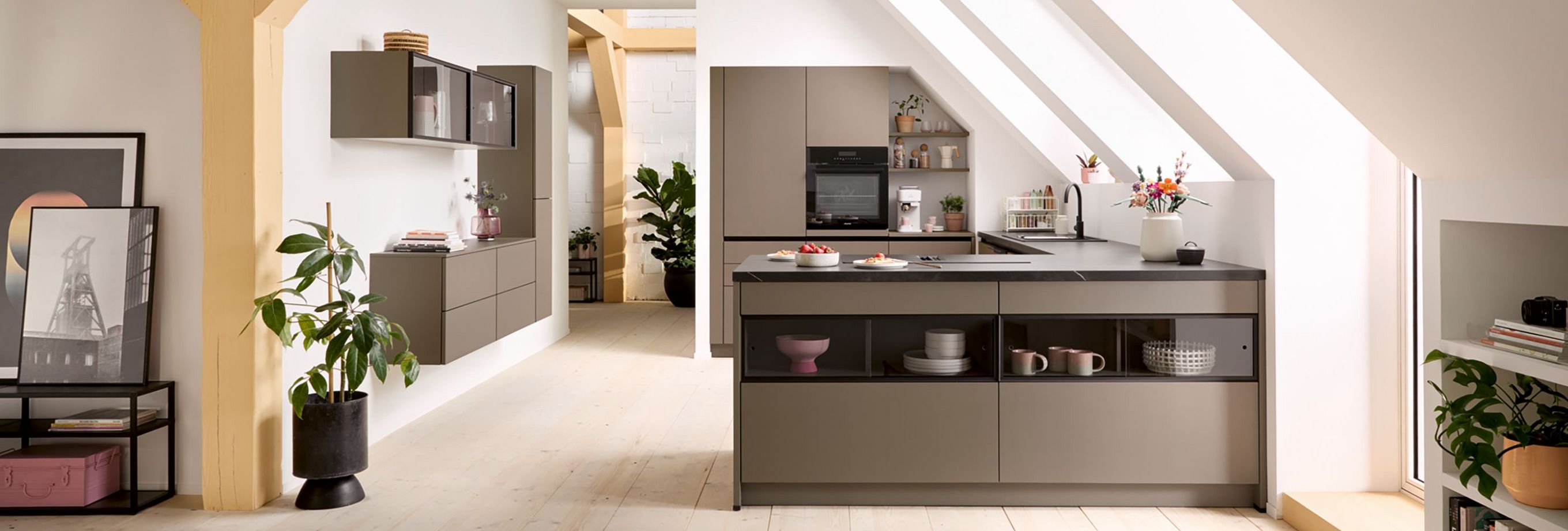 Über den Dächern der Stadt entfaltet sich ein offener Lebensraum, der zum Genießen und Verweilen einlädt. Durch die Dachschräge entsteht eine besondere Atmosphäre voller Wärme und Leichtigkeit. Wenn morgens der Duft von frischem Kaffee den Raum erfüllt, beginnt der Tag mit einem Gefühl von Ruhe und Inspiration – ein Zuhause, das Offenheit und Geborgenheit vereint.